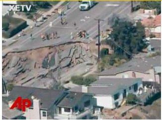 There were landslides/sinkholes in San Diego and Pennsylvania this past week. Are these more early symptoms of the Bowing and damage that the US will see prior to the New Madrid rip, per the Zetas? http://ap.google.com/article/ [and from another] SoCal Sinkhole Swallows Highway, Home [Oct 3] http://abcnews.go.com/US/story?id=3683995&page=1 A four-lane road buckled Wednesday and sank slowly in a hilly upscale neighborhood, threatening several homes. Gas and power supplies were shut off. The sinkhole in the La Jolla neighborhood of million-dollar homes cut in a cone shape and was about 50 yards long. Street cracking began on Soledad Mountain Road in July and escalated in August, along with breaks in water and gas lines.