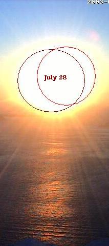 - Santorini has historically had the White Persona (small object) at the 2-3 o'clock position, as shown on July 28, and the Red Persona at the 6 o'clock position at sunset, as shown on June 21, or Occulted as in July 28. The White Persona has pulled in a retrograde orbit to be close to the Ecliptic, and the Red Persona occulting the Sun.